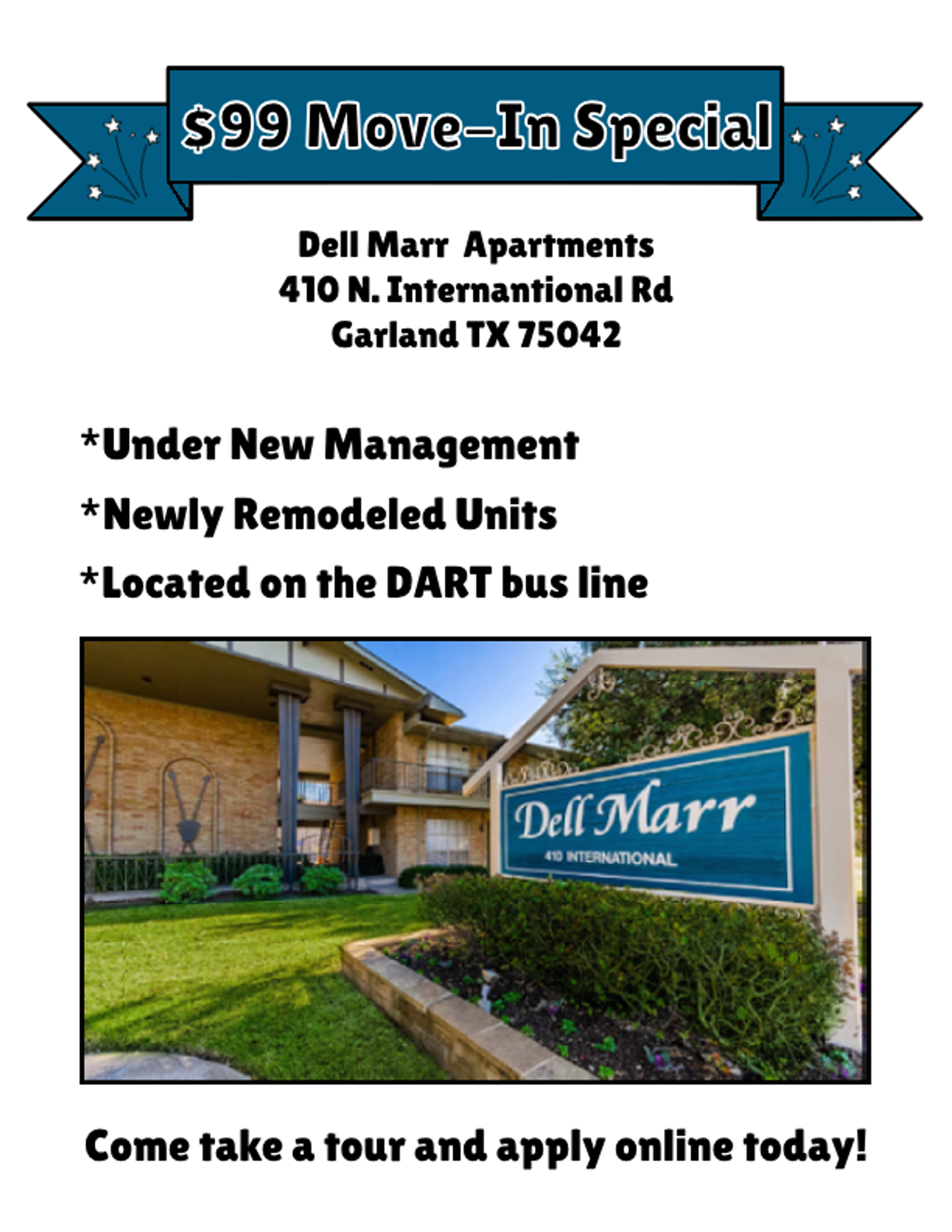 Welcome to Dell Marr and Allandell Apartments, find a great place to live. With a modern set of amenities that are standard in each apartment, you will be sure to find the perfect space to call home.